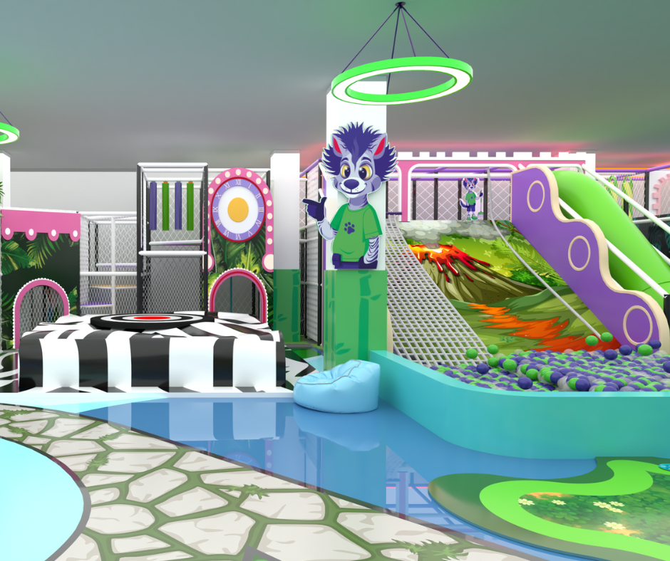 Большой лабиринт с горкой, плоским вулканом, сухим бассейном, прыжковой подушкой